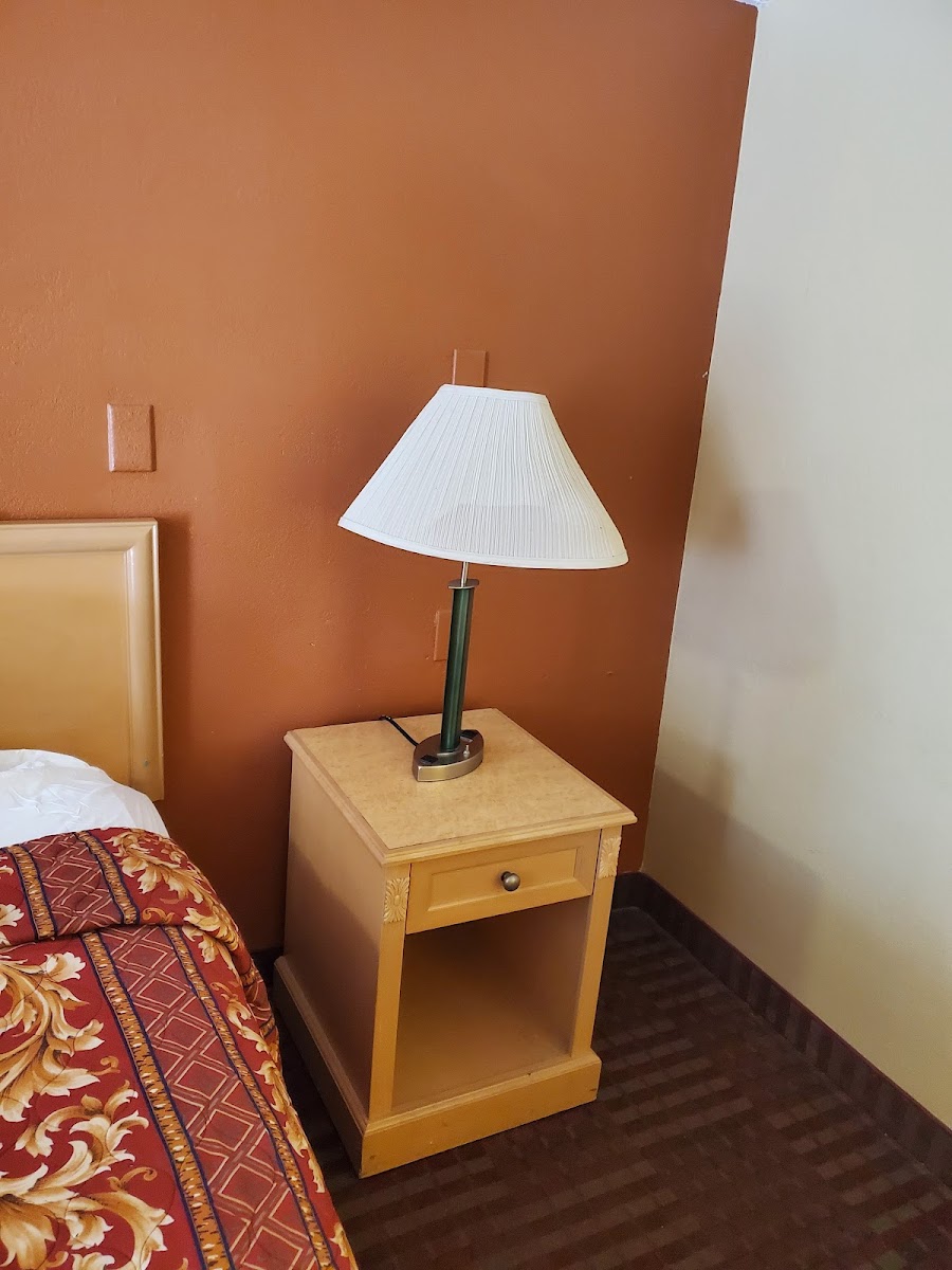 Older motel. Nice firm bed. There was some maintenance to do in the room. Holes in the wall and door. Had a good night's rest. If your looking for a place to sleep with no frills this is the place. Did have a microwave and refrigerator in the room. No complaints.
